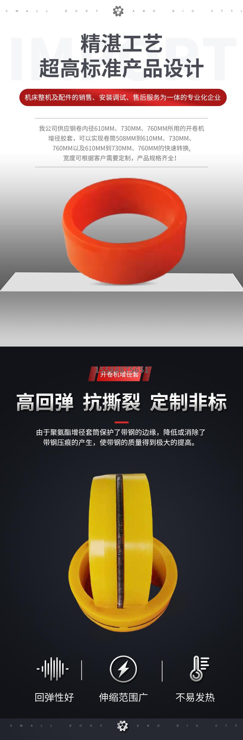 不銹鋼帶加工開卷機508變610聚氨酯增徑膠套如何使用